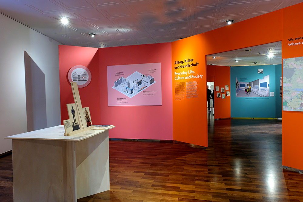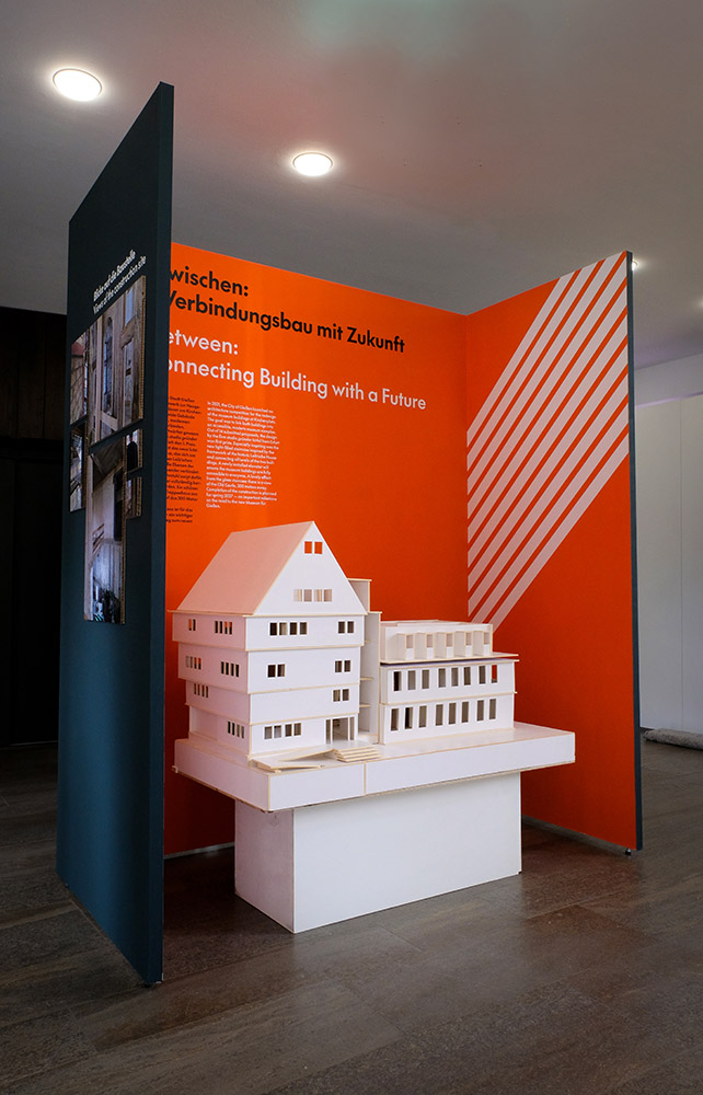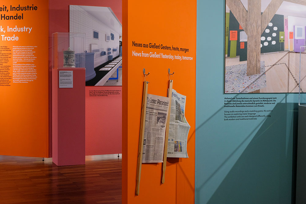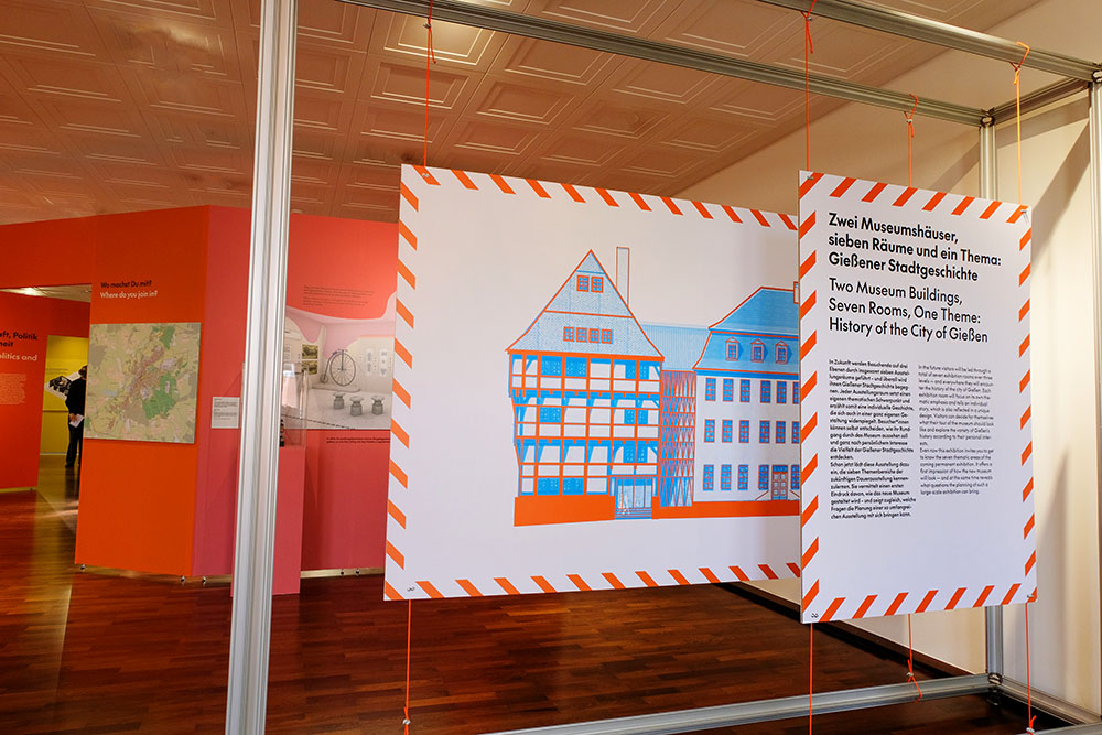 Die Planung und Realisierung einer großen Dauerausstellung nimmt viel Zeit in Anspruch, besonders wenn zwei große historische Gebäude dafür kernsaniert werden müssen. Um die Bevölkerung auf dem Laufenden zu halten und natürlich auch neugierig zu machen, wurde eine Sonderausstellung konzipiert, die Einblicke in das Großprojekt gibt. Dabei stellt sie die sieben Ausstellungsbereiche in den Mittelpunkt, führt aber auch den Gießener*innen vor Augen was neben diesem Mammutprojekt noch so alles passierte und passiert. Ergänzt wird die Ausstellung durch vier Aktionstische, die spielerisch erläutern, was dazugehört, eine Ausstellung zu realisieren.